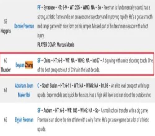 总第60顺位!雷霆队可能选中,又一个中国球员!