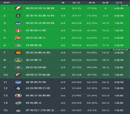 随着雷霆6连胜,掘金被三分绝杀,西部最新排名出炉!勇士第8不稳