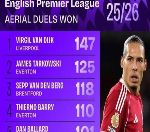 本赛季英超争顶榜:范戴克147次断档第1,佳夫、科纳特上榜 -